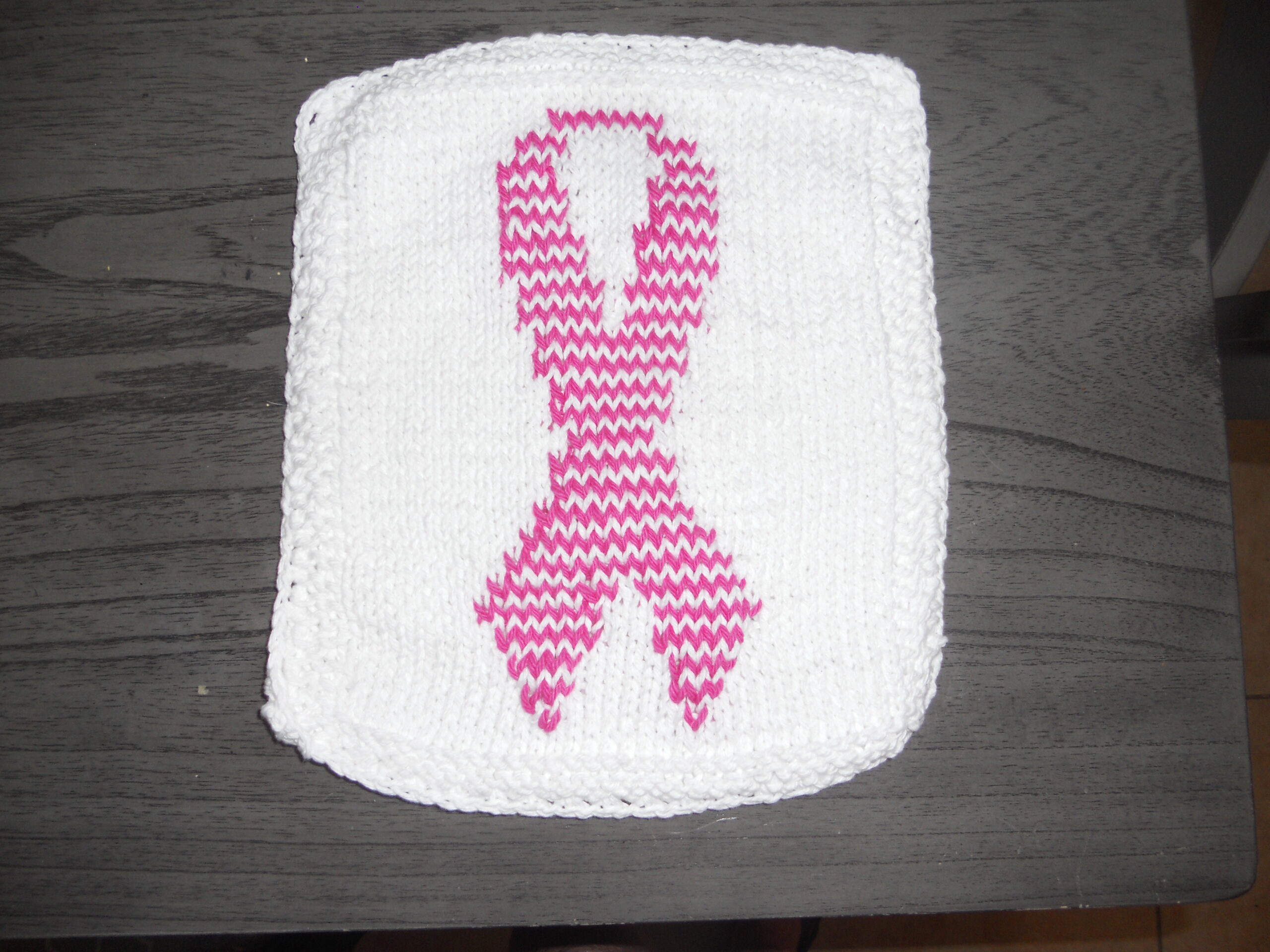 White with hot pink ribbon hot pad.
